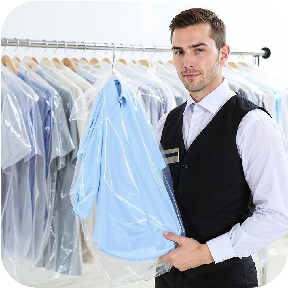 Place your laundry in any disposable bag — one bag per service type (e.g. wash & fold, dry cleaning).